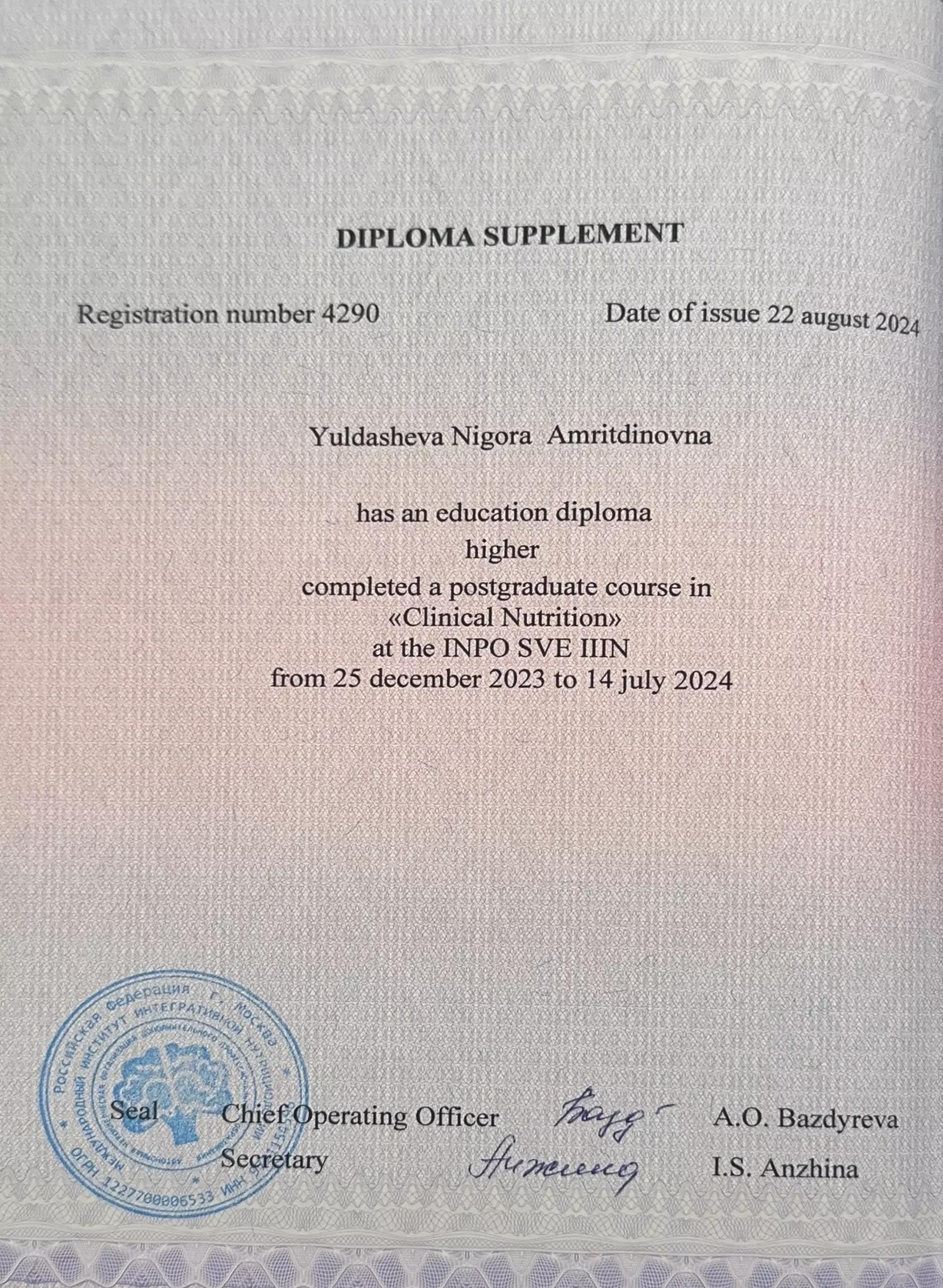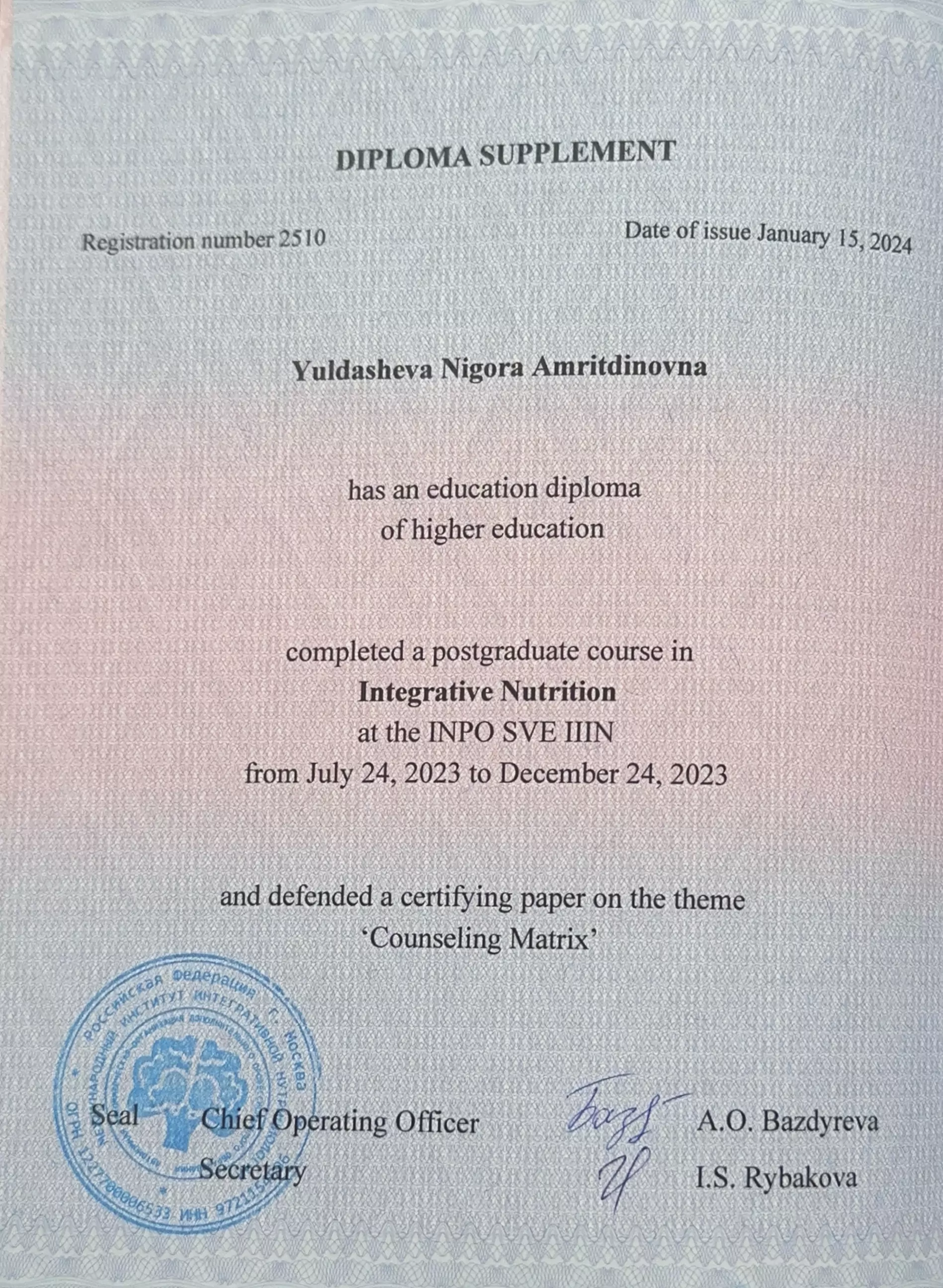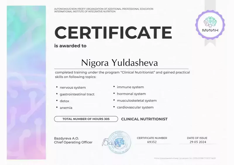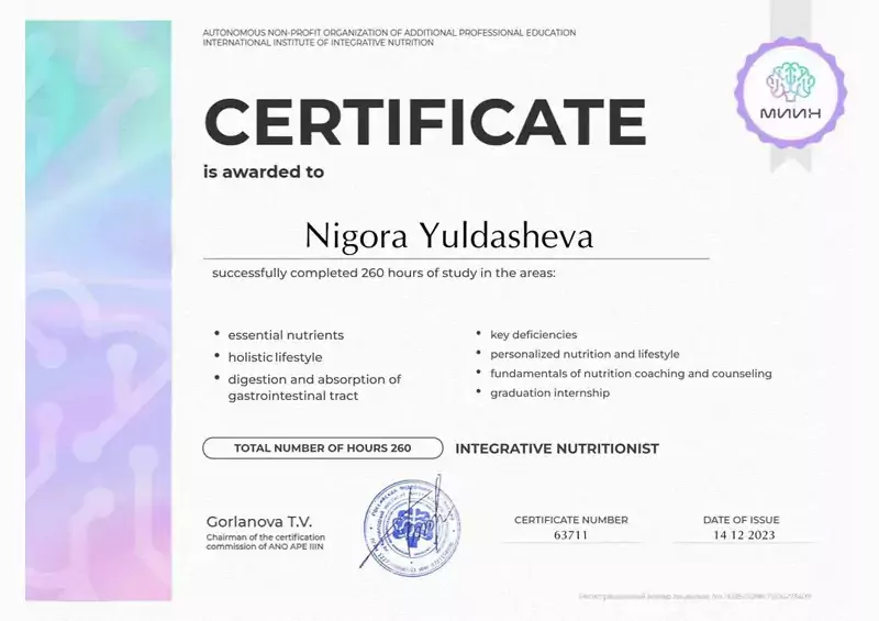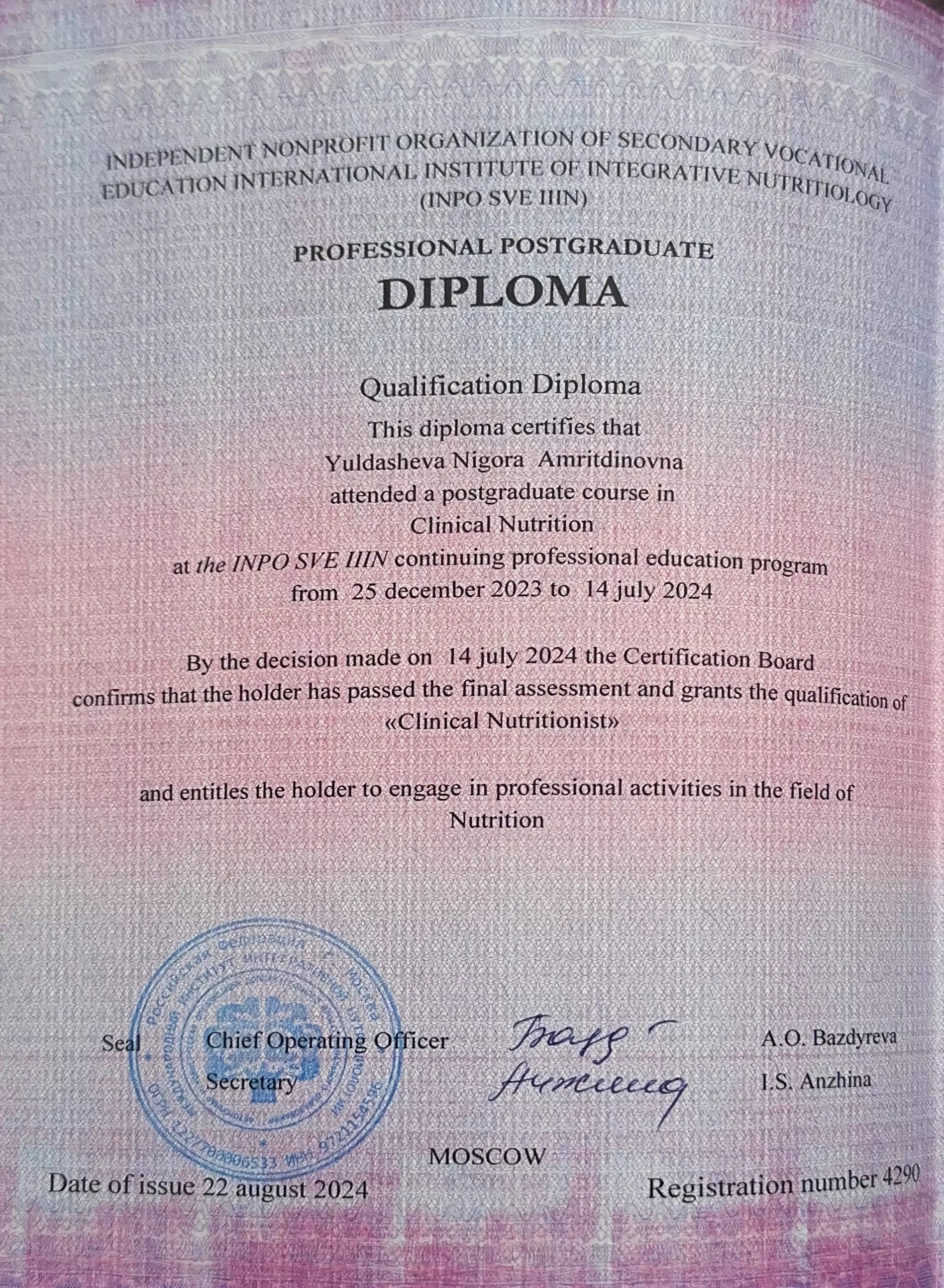 Я верю в индивидуальный подход, потому что каждый организм уникален. Моя цель — помочь найти тот баланс, который подходит именно вам, чтобы вы чувствовали себя энергичными, здоровыми и довольными собой.