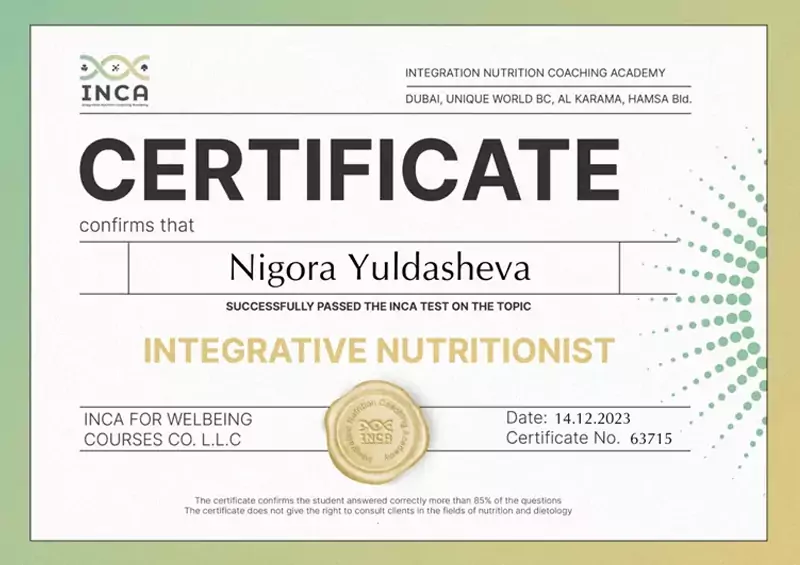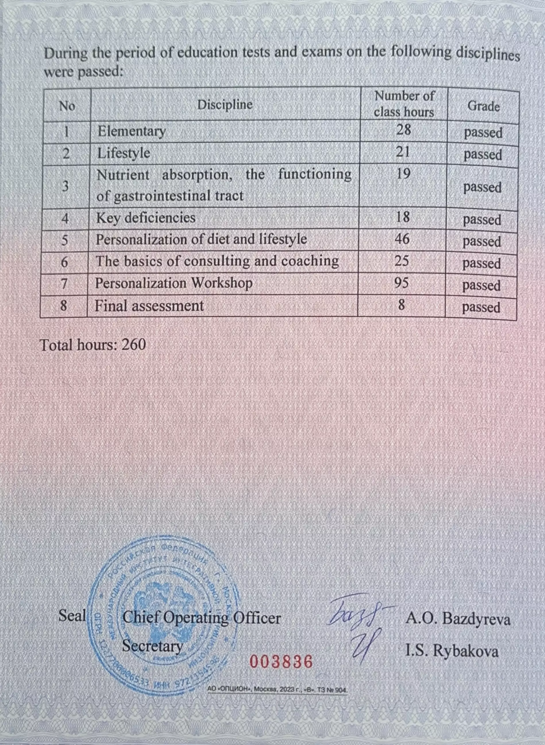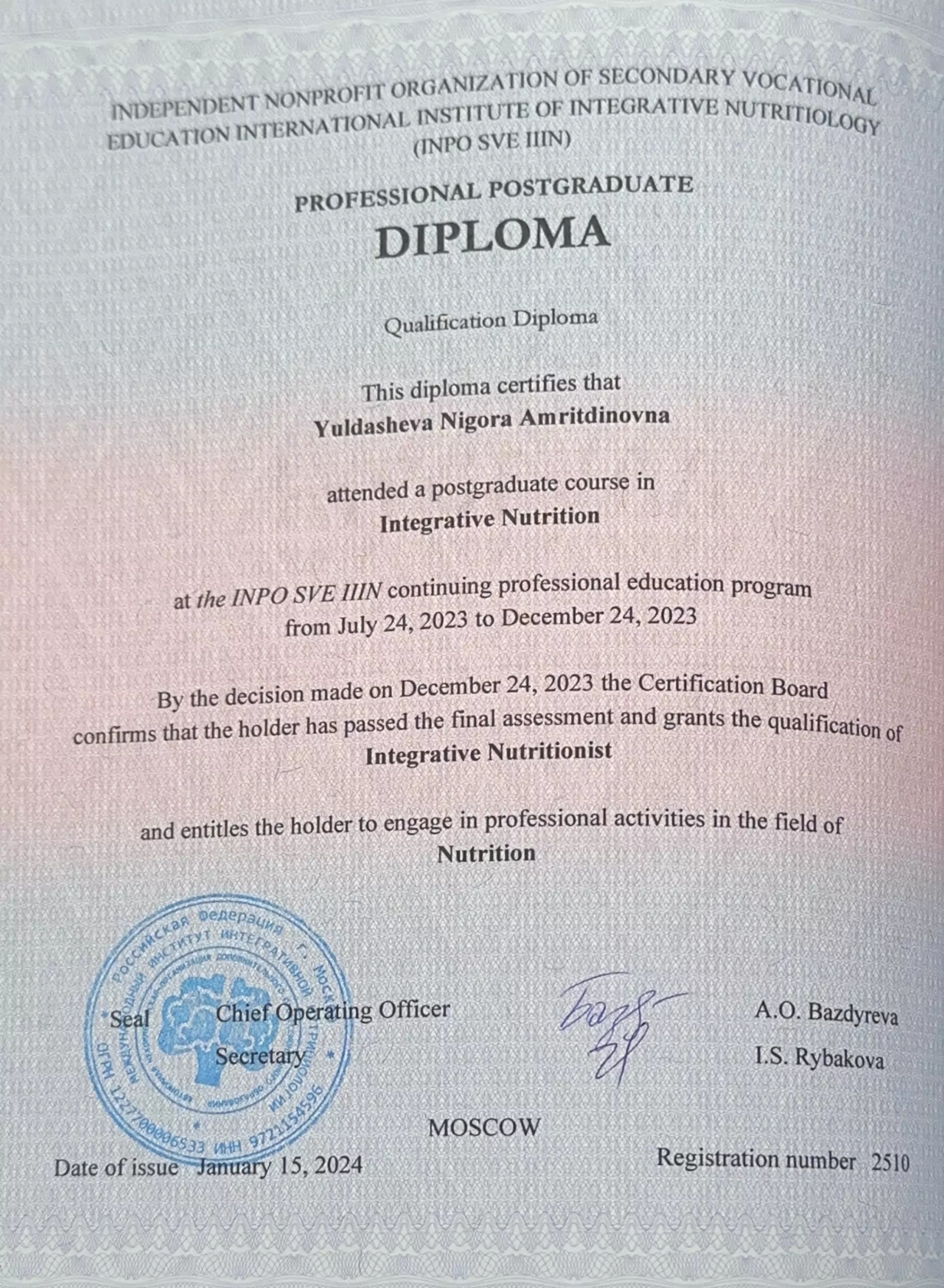 Я верю в индивидуальный подход, потому что каждый организм уникален. Моя цель — помочь найти тот баланс, который подходит именно вам, чтобы вы чувствовали себя энергичными, здоровыми и довольными собой.